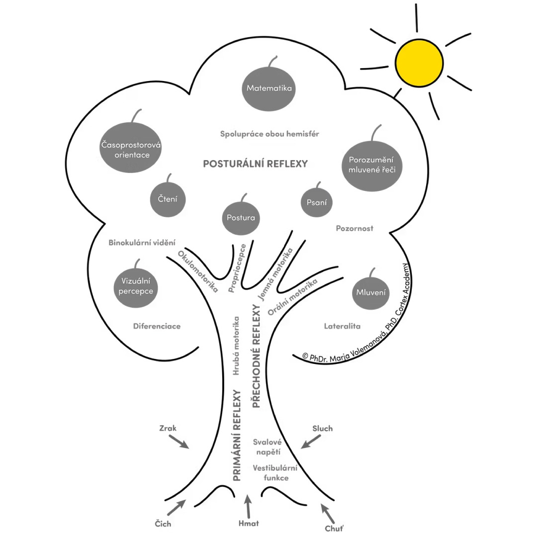 Když se narodíme, náš mozek není zcela vyvinutý. Pomáhá si takzvanými primárními (novorozeneckými) reflexy, které zajišťují přežití a podporují rozvoj nervových drah. „Například reflex, který při otočení hlavy natáhne paži, je v pořádku u miminka. Ale pokud přetrvává i ve školním věku, může dítěti bránit v psaní, protože nedokáže ovládat pohyby odděleně,“ vysvětluje Marja Volemanová.